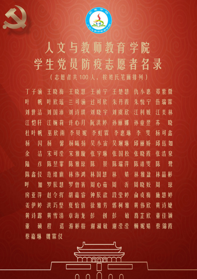 当前,疫情防控形势复杂严峻,人文与教师教育学院党委为认真落实疫情防控工作部署,引导学院青年学子积极响应学院号召,主动投身到疫情防控志愿服务行列。截至目前,学院共有100名学生党员志愿者投入到志愿活动中,服务时长累计突破500小时。