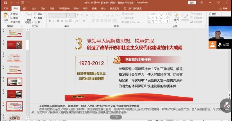 两个结合。一是将教师专题讲授和教研室集体研讨相结合,二是将实现教师直播教学和学生线上自主学习相结合。借助腾讯会议、腾讯课堂等技术手段和网络平台,通过中国大学慕课异步SPOC课程,学生开展线上自主学习;课程主讲教师课后辅导答疑的方式,实现了混合式教学模式的创新,既是对课堂教学“专题报告+系统讲授”的具体实践,也丰富了疫情期间学生线上教学的形式与内容,为创新思政课教学作出有益探索。