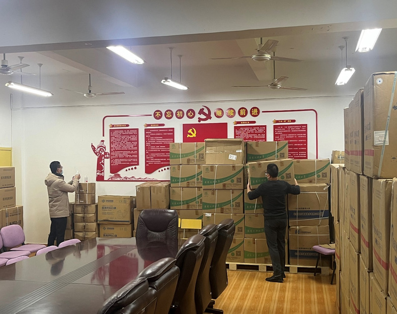 工作人员清点防疫物资