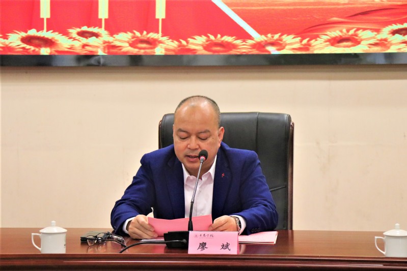 4月22日下午,我校举行第十二期“青马工程”培训班结业典礼暨第十三期“青马工程”培训班开班仪式,会议按照疫情防控要求,采用主会场与分会场,线上与线下相结合的形式召开。党委委员、副校长廖斌出席会议,宣传部、学生工作部、武装部(保卫处)、团委、马克思主义学院负责人,各二级学院团委负责人以及青马培训班学员100余人参加会议。