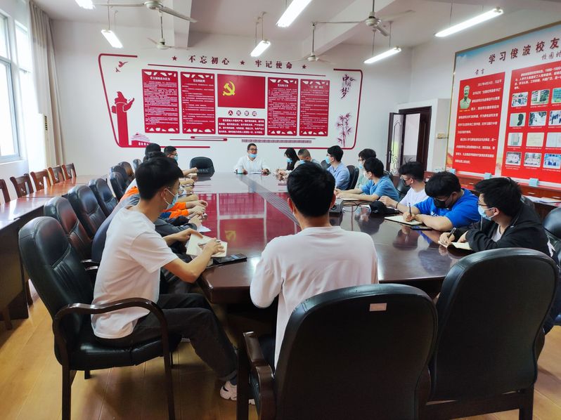 机电工程学院党委副书记感谢毕业生党员代表在疫情防控常态化背景下返校协助开展毕业班各项工作。勉励各位党员毕业生:一是站好最后一班岗,积极主动协助辅导员做实做细各项毕业班工作,为班上同学四年学习生涯划上圆满句号;二是持续关心同学,对毕业设计、就业去向等有困难的同学多加帮扶,确保班上每位同学顺利毕业、文明离校和高质量就业;三是牢记党员本色,在未来岗位上一如既往地努力工作、勤奋学习、再创佳绩,以优异的业绩为党争光,为母校添彩。