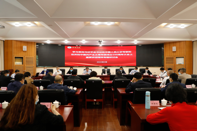 5月20日,校党委书记庄祥生主持召开理论学习中心组(扩大)学习会,专题研讨习近平总书记在中国人民大学考察重要讲话精神和习近平总书记在庆祝中国共产主义青年团成立100周年大会重要讲话精神。校领导吴承祯、陈金瑞、杨昇、陈宗荣、张大烛、廖斌、郑细鸣出席会议,各二级党委书记、各部门负责人参加会议。
