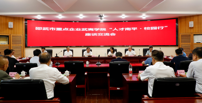 招聘会后,校企双方进行座谈交流。校党委书记庄祥生、校长吴承祯、副校长廖斌;邵武市市长郭绯红,副市长张晟、翁淑燕出席座谈会。双方围绕校企地共建话题,就如何拓宽我校与校董单位、地方重点龙头企业开展订单式培养和校企联合培养方面进行深度交流。