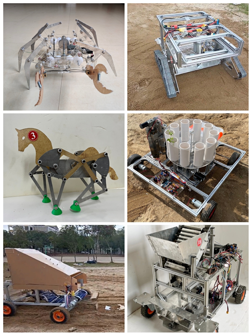 入围国赛作品:仿生螃蟹、履带式沙滩垃圾清洁车、机械马、梭梭树种植机、棘爪式沙滩垃圾清洁车、一种自动化一体式沙漠植树作业车