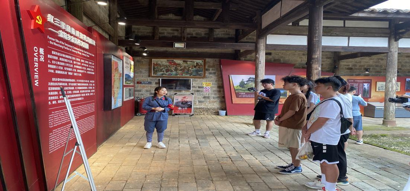 在讲解员的带领下,土木工程与建筑学院社会实践团队沿着古道下坊老街参观了观音阁、李家祠堂和红军标语墙、清代古井、东方县委、红军医院、红军桥,重走红军路,深入了解当年的金坑苏区人民与红军将士并肩作战的革命斗争史,深切感悟金坑红色文化。