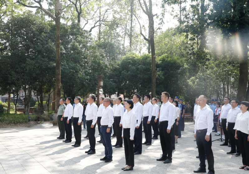 弘扬英烈志,奋进新时代。9月30日,在我国第九个烈士纪念日之际,武夷山市在列宁公园闽北革命烈士纪念碑前举行烈士公祭仪式。校领导庄祥生、陈金瑞、杨昇、张大烛、郑细鸣与武夷山市四套班子领导、人武部领导一起参加仪式。