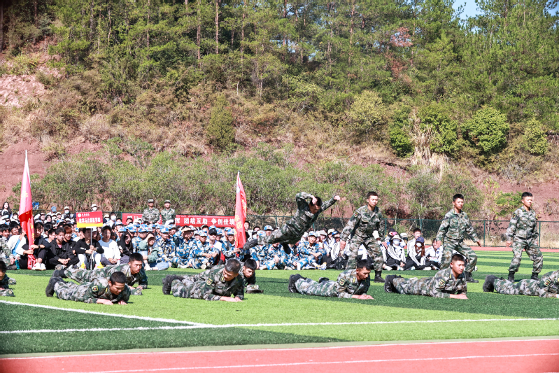 总结表彰,树立榜样激励奋进。10月21日,学校在同文区运动场开展2022级新生军训会操总结大会。结合日常训练、每日考核、内务评比、军训会操等方面综合评价,共评选出军训道德风尚集体3个,军训内务评比先进集体6个,军训会操表演先进集体6个,起到了良好的典型示范引领作用。