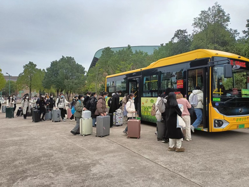 校党政办公室、学生工作部联系地方公交公司,调度4辆大巴,开通从学校开往武夷山高铁北站的“专线车”循环接送,有序组织返乡学生“出校门”“上车门”“到站点”,降低途中感染风险。后勤管理处采购防疫用品,为返乡学生发放口罩146000余个,熬制防疫中药饮,免费提供给广大师生饮用。教务处结合实际调整做好期末教学工作安排和期末考试工作部署,为学生留足学习和复习时间顺利返乡,保障线上教学和考试质量。学生工作部发起2023年寒假致全体学生及家长的一封信,开通寒假心理支持与援助热线;就业指导中心通过微信公众号和学校就业群组实时发布招聘信息,并开通职业规划与就业指导热线,助力2023届毕业生顺利就业。宣传部通过校园网、微博、微信公众号等平台推送返乡途中防疫常识,并与校防控办向全校师生员工发出“全员佩口罩”的倡议。机关党委组织党员志愿,在校门口值守,引导学生有序离校,并提醒做好个人安全防护。