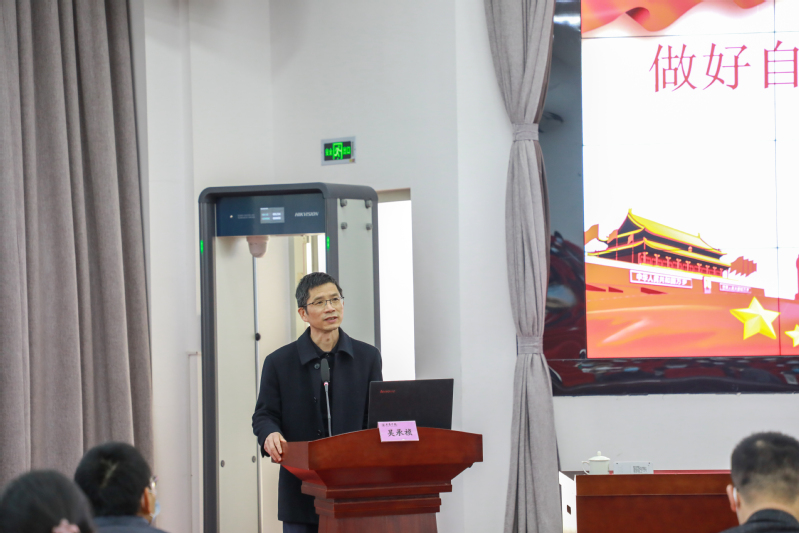 吴承祯从“世界百年未有之大变局:复杂的呈现形态”中分析和总结了三年来疫情防控下国家的经济发展,并以毛泽东《七律.和柳亚子先生》规劝诗为引题,表达了对同学们当下做好自己健康第一责任人的殷切期望。他指出,在今后抗疫工作中,我们仍然坚持人民至上、生命至上的理念,最大程度保护人民群众生命安全和身体健康、最大限度减少疫情对经济社会发展的影响。