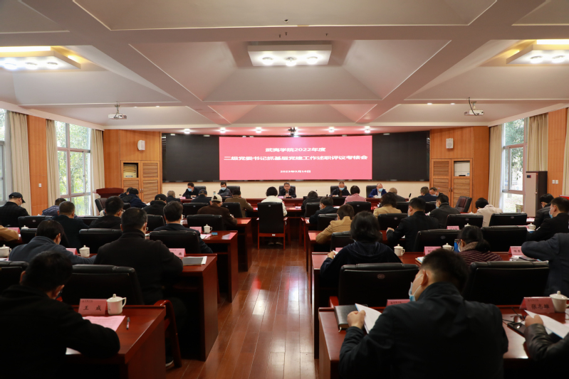3月16日,我校在圆形会议室召开2022年度二级党委书记抓基层党建工作述职评议考核会。校领导、二级党委书记、机关部门主要负责人、部分省级以上“两代表一委员”、基层党支部书记、党员干部和教师代表、优秀学生党员代表参加会议。会议由校党委书记庄祥生主持。