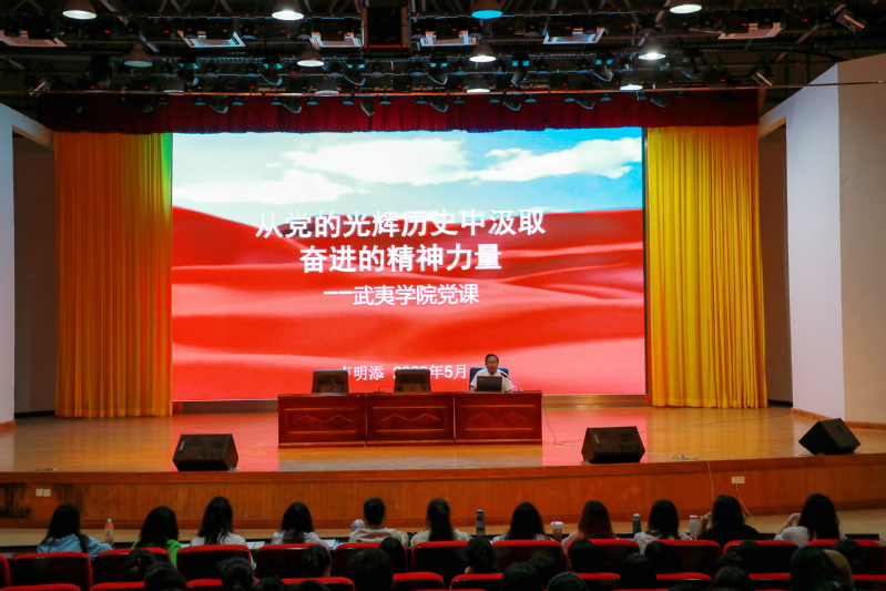 开班式后,海峡成功学院(海外教育学院)院长卢明添为培训班学员上《从党的光辉历史中汲取奋进的精神力量》党课。