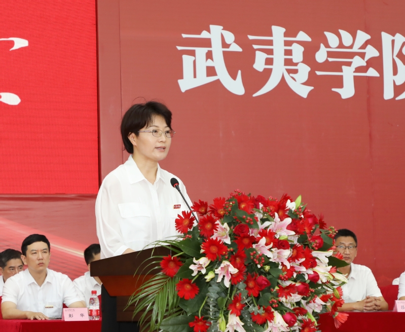 校长吴承祯在致辞中代表全校师生员工对新同学的到来表示热烈的欢迎和真诚的祝贺。他与同学们分享了我校优秀校友始终牢记“涵养穷索、致知力行”校训,发扬“艰苦奋斗、奋发有为”的学校精神,经过不懈奋斗取得可喜成绩的经历,告诉同学们没有与生俱来的优秀、只有后天不懈的努力,只有越努力才会越幸运、只有越奋斗才能越成功。他指出,当前,武夷学院正处于加快建设特色鲜明的一流应用型大学的关键期。新同学们的到来,为学校事业发展增添了新力量、注入了新活力。学校会更好承担起“得天下英才而育之”的责任,与同学们一起追光逐梦、成长进步。