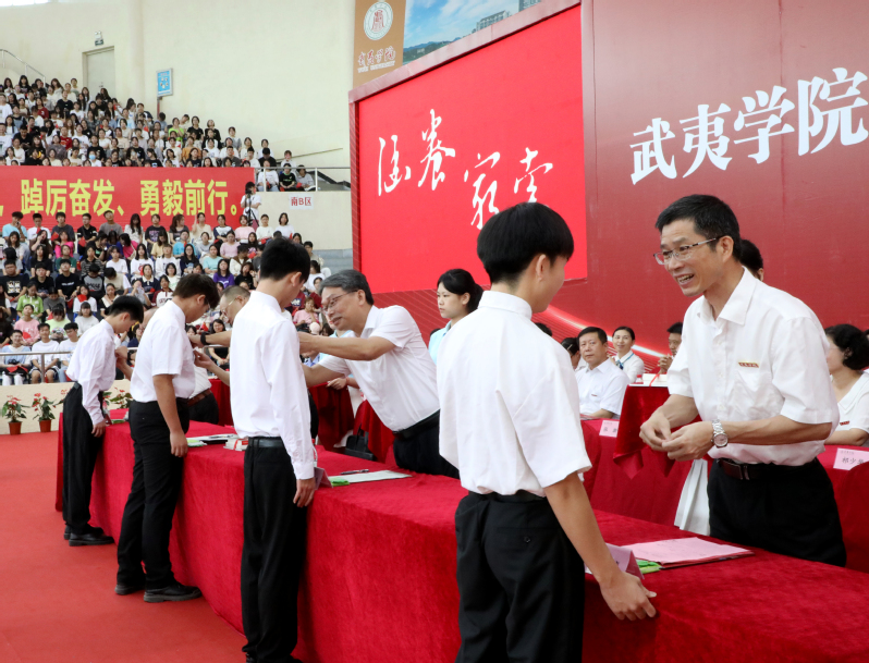 典礼上,校领导为新生代表佩戴校徽、赠送书籍。教师代表、福建省优秀教师田丹,在校生代表、艺术学院雷志文同学,新生代表、人文与教师教育学院陈佳玉同学分别在典礼上发言。全体新生集体宣誓“强国有我、请党放心”。