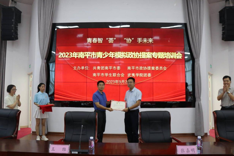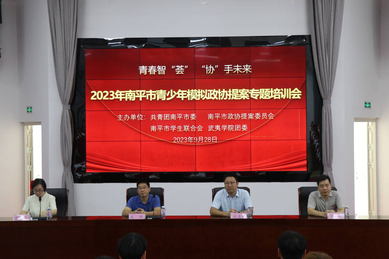 9月28日,2023年福建省青少年模拟政协提案南平市征集评选启动会在我校圣农报告厅举行。南平团市委书记张嘉明、南平市政协提案委副主任王维、南平团市委常委范森慧,武夷学院团委书记王波出席会议。