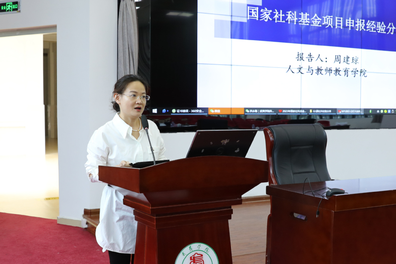 会上,数学与计算机学院院长郭磊、人文与教师教育学院副院长赵鹏升以及2023年国家自然基金获得者郑航博士、2023年国家社科基金获得者周建琼博士分别结合自身经历分享了经验。