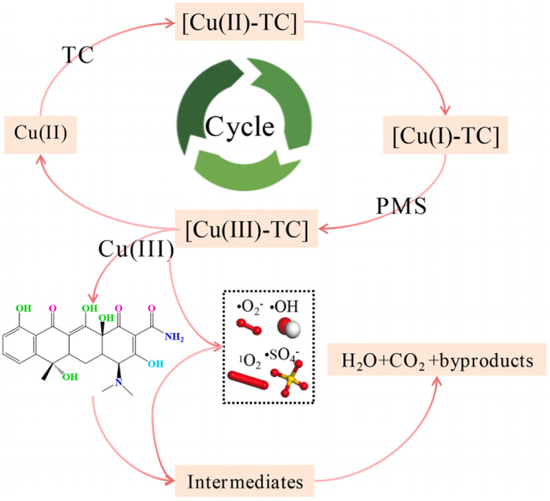 图1 Cu(II)/PMS体系中四环素催化降解机理示意图