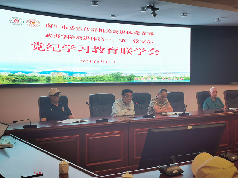 为推动党纪学习教育走深走实,5月17日,机关党委组织武夷学院离退休第一、第二党支部与南平市委宣传部机关离退休党支部党员,在我校举办党纪学习教育联学会。武夷学院党委原书记何三保、原副书记姚进生,南平市委宣传部原二级巡视员黄卫平等参加。