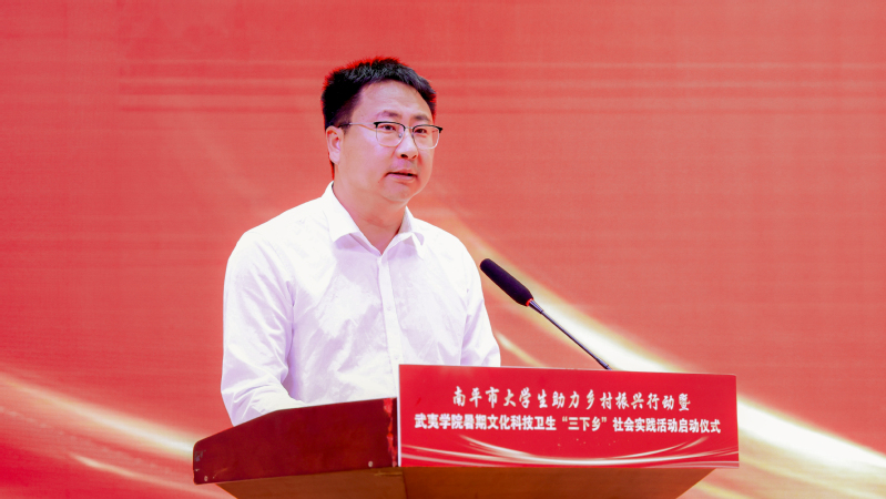 6月26日,南平市大学生助力乡村振兴行动暨武夷学院暑期文化科技卫生“三下乡”社会实践活动启动仪式在我校举行。校党委委员、副校长廖斌,南平团市委书记张嘉明,南平市农业农村局机关党委书记、二级调研员范小龙出席活动。