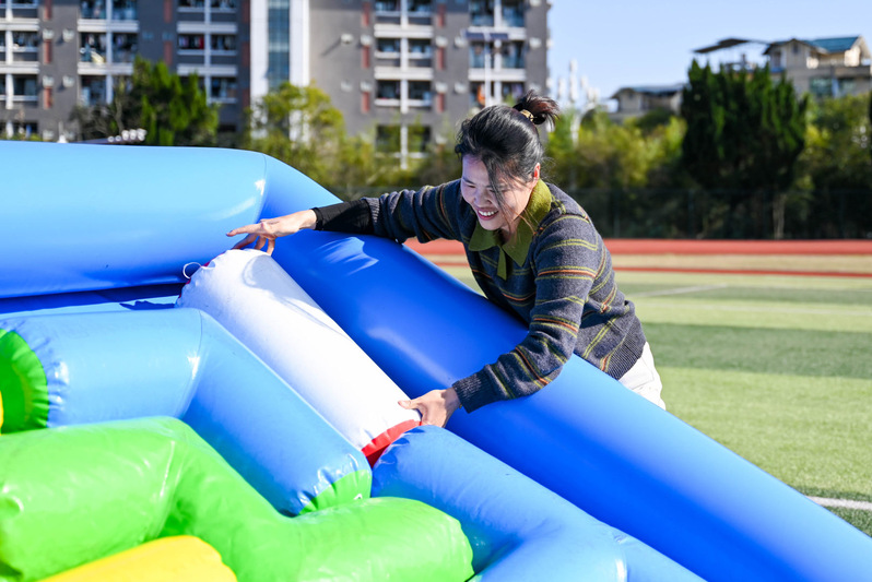 随着发令声响,彩跑活动正式开启。本次趣味彩跑设置“滚滚向前”“俄罗斯方块”“趣味拔河”三个竞技项目,既考验团队协作,又充满趣味挑战。赛场上,队员们默契配合、奋力拼搏,欢呼声、加油声此起彼伏。二级学院党政领导、机关部门负责人也参与其中,为队伍注入了更多力量与热情。