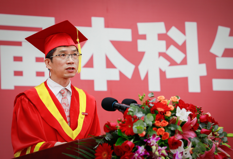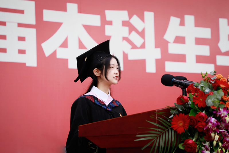 吴承祯代表学校寄语毕业生:一是希望同学们在坚定理想信念中把准人生航向。要坚定不移听党话、跟党走,厚植对党的信赖、对中国特色社会主义的信心、对马克思主义的信仰,树牢为祖国为人民永久奋斗、赤诚奉献的坚定理想。要高举爱国主义伟大旗帜,不断增强做中国人的志气、骨气、底气,在激扬青春、奉献社会的进程中践行“请党放心,强国有我”的铮铮誓言。二是希望同学们在矢志拼搏奉献中实现人生价值。要勇做走在时代前列的奋进者、开拓者、奉献者,胸怀“国之大者”,踊跃投身改革发展主战场,在各自工作岗位上建功立业,用青年人的奋斗精神和担当作为,用青春的智慧和汗水打拼出一个更加美好的中国。三是希望同学们在勇于开拓创新中争当时代先锋。要始终保持初生牛犊不怕虎、越是艰险越向前的冲劲和闯劲,充分发挥创新创造潜能,善于从颠覆性技术和持续性技术突破中捕捉创新机遇,努力抢占未来竞争制高点,彰显青年一代应有的锐气和担当。四是希望同学们在弘扬新风正气中涵养高尚品德。要崇德向善、见贤思齐,做到明大德、守公德、严私德。要传承红色基因,赓续红色血脉,明辨是非、恪守正道,保持定力、严守规矩,追求更有高度、更有境界、更有品位的人生。