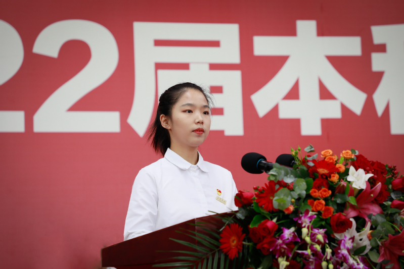 校长吴承祯在致辞中首先代表学校向2022届毕业生表示最诚挚的祝贺,向四年来付出了辛勤劳动的一线教职员工表示崇高的敬意,向家长朋友致以最诚挚的问候。他指出,同学们是经历极不平凡四年的一届毕业生,是见证学校高质量发展的一届毕业生,是自信自强、刚健有为的一届毕业生;也是国家实现第一个百年奋斗目标的经历者、见证者,更是国家实现第二个百年奋斗目标、建设社会主义现代强国的生力军。大家要牢记习近平总书记的殷切期盼和张彦部长的亲切关怀,自强不息、勇毅前行,把青春播撒在民族复兴的征程上,把光荣镌刻在历史行进的史册里。