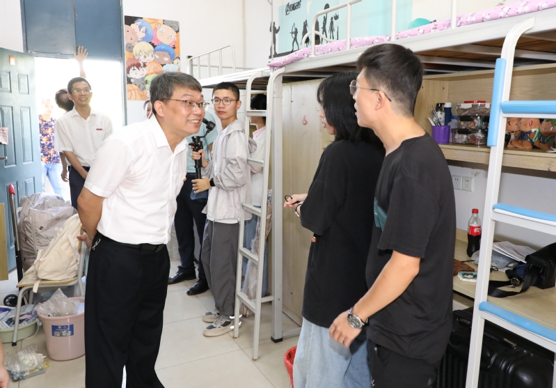 悠悠武夷,书香武院。9月9日,我校迎来了2023级新生入学,校园内外充满着浓厚的喜悦氛围。校领导庄祥生、吴承祯、杨昇、廖斌、郑细鸣到迎新现场检查指导工作,并深入宿舍看望慰问新生。