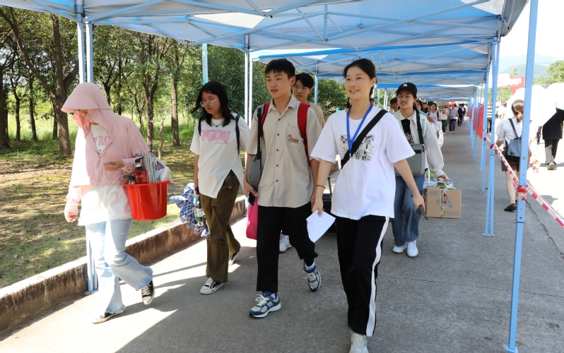 志愿者们迎接新生入学