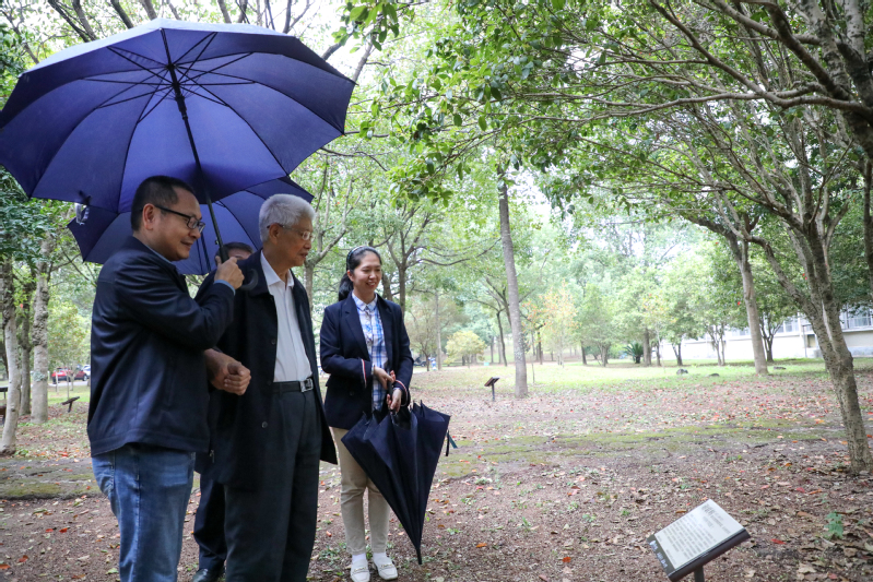 座谈前,谢联辉来到学校院士林,察看其本人在2007年种下的四季桂。