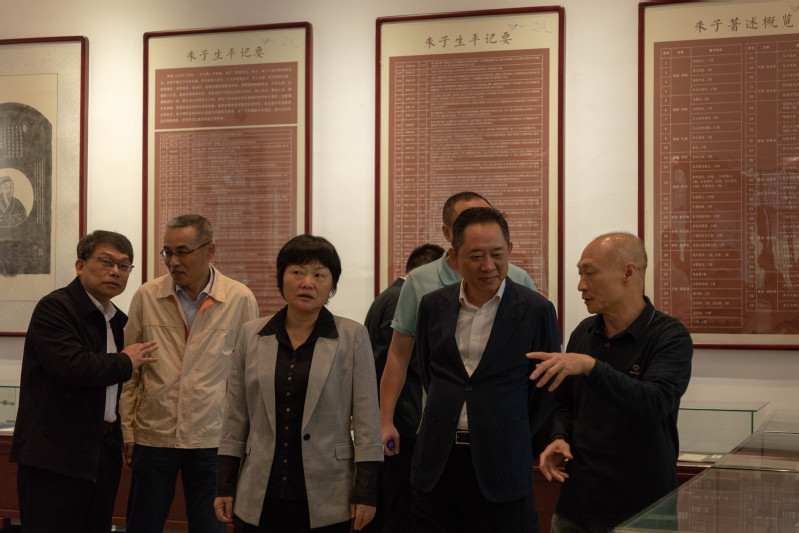 刘伟泽参观了朱子书院的内外文化设施,听取了我校在学术研究、文化传承等领域以及第二届考亭论坛筹备工作推进的情况介绍,对相关工作表示肯定。他指出,武夷学院要深入学习贯彻习近平文化思想,立足“两个结合”,整合地方特色资源,着力在保护中传承、在挖掘中拓展、在传播中创新、在融合中发展,推动着以朱子文化为代表的中华优秀传统文化创造性转化、创新性发展;要以更高的政治站位、更好的质量标准、更严的工作要求,全力做好第二届考亭论坛相关筹备工作。