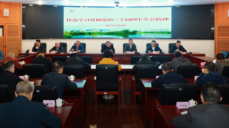 会议强调,学习好贯彻好党的二十届四中全会精神,是当前和今后一个时期的重大政治任务。要深学细悟,凝心铸魂,以理论上的清醒筑牢政治上的坚定。全校各级党组织和广大党员干部必须原原本本学、联系实际学、带着问题学,深刻把握党的二十届四中全会承前启后的重大历史地位、“十四五”时期我国发展取得的重大成就、“十五五”时期经济社会发展的指导思想、“十五五”时期经济社会发展必须遵循的重要原则、“十五五”时期经济社会发展的主要目标、“十五五”时期的重点任务以及“十五五”时期教育科技人才的战略部署,切实做到入脑入心、见行见效。要精准施策,擘画蓝图,以战略上的主动赢得发展上的先机。要毫不动摇坚持和加强党的全面领导,在强化政治统领上达到新高度,在锻造干部队伍上展现新作为,在夯实基层基础上实现新突破;要坚定不移培养担当大任的时代新人,在筑牢育人根基上坚守初心,在构建“大思政”格局上持续用力,在师德师风建设上常抓不懈;要全力以赴推动内涵式高质量发展,在科技创新与社会服务上攻坚突破,在实施人才强校战略上精准发力,在优化学科专业布局上彰显特色,在深化教育教学改革上勇于创新,在推动文化传承创新上打造品牌,在拓展开放办学格局上开阔视野;要持之以恒保障和改善民生,牢固树立并深入践行以师生为中心的发展思想,将更多资源向民生领域倾斜,让发展成果更公平、更充分地惠及全体师生;要毫不松懈统筹发展和安全,始终将安全作为一切工作的前提和基础,牢固树立和践行总体国家安全观,严格落实意识形态工作责任制,持续完善校园安全风险防控体系,为学校事业改革发展行稳致远提供坚实可靠的安全保障;要一以贯之深化全面从严治党,始终保持“永远在路上”的清醒坚定和坚韧执着,层层压紧压实管党治党政治责任和主体责任,努力营造政治清明、干部清正、校园清朗的政治生态和育人环境。要精心组织,务求实效,以宣传上的声势凝聚行动上的合力。全校各级党组织和领导干部要充分发挥头雁效应,精心部署安排,强化示范引领,强化学习的组织领导、创新宣传方式载体、深化研究阐释、注重实干实效,推动全校上下迅速兴起学习宣传贯彻热潮,以高质量发展的新成效检验学习贯彻的成果,汇聚起矢志不渝跟党走、奋发有为谱新篇的磅礴力量。
