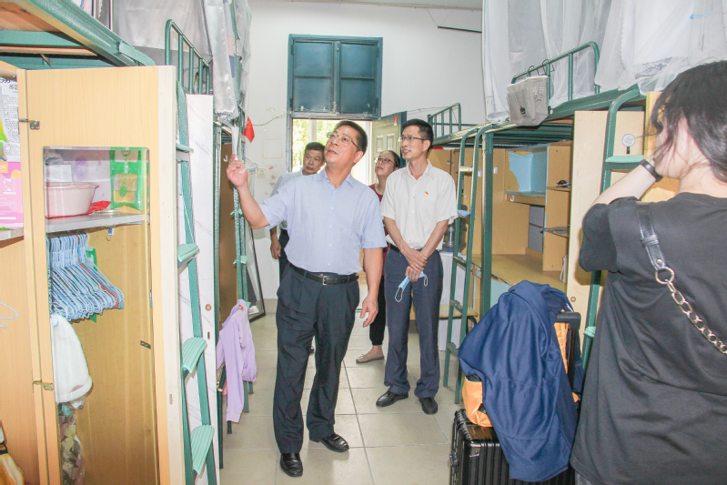 检查中,校领导一行先后检查了西门学生返校入口、各学院教学楼、实验室、图书馆、食堂、学生公寓等,重点察看了学生宿舍疫情防控、安全管理、维修改造、教室宿舍卫生清洁等情况,认真听取了相关单位工作汇报,对新学期开学各项准备工作表示肯定。并与学生进行了亲切交流,了解学生的返校感受,征求学生的意见。