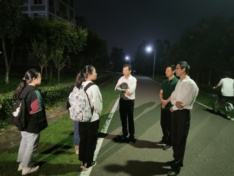 9月30日晚,校长吴承祯、副校长张大烛在办公室相关人员的陪同下,走访校内各食堂等场所,慰问假期留校学生,开展国庆(中秋)节前疫情防控检查。