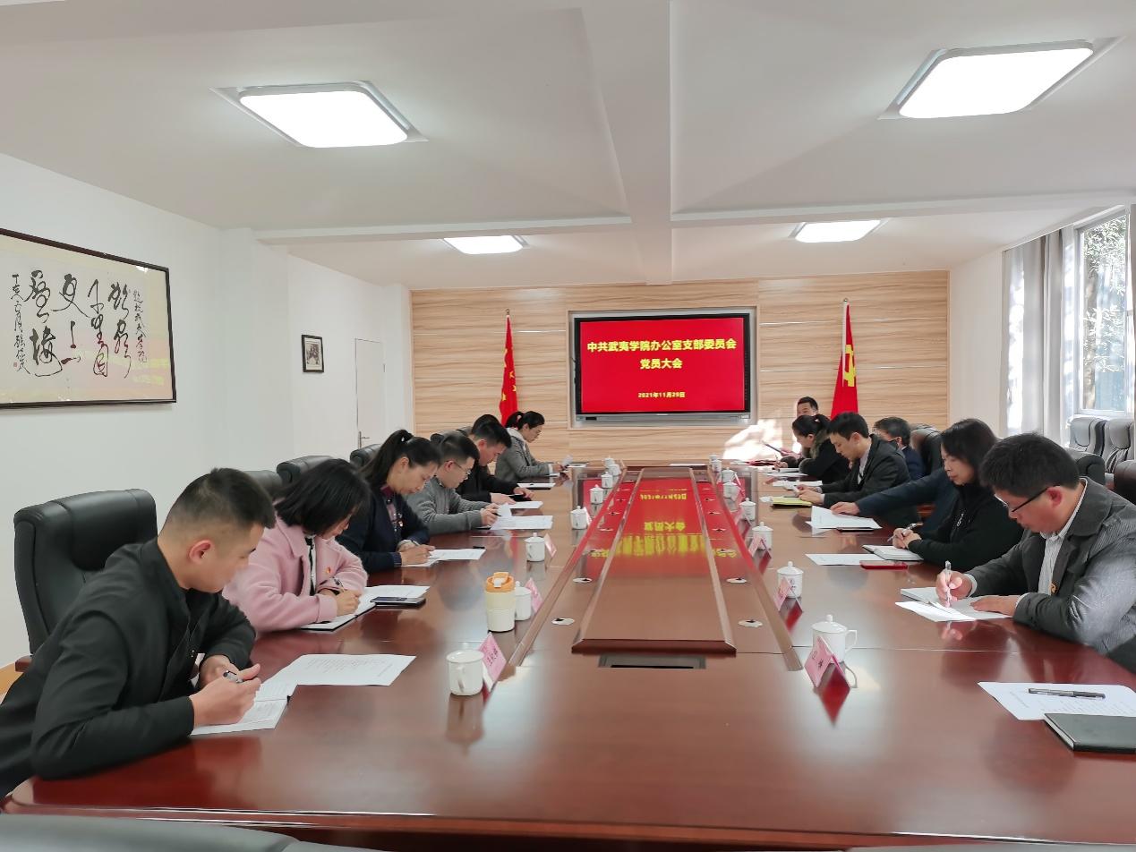 11月29日下午,办公室党支部在第一会议室召开党员大会,选举新一届支部委员会。校党委书记庄祥生、副校长张大烛以普通党员身份参加会议,会议由办公室党支部书记彭华主持。