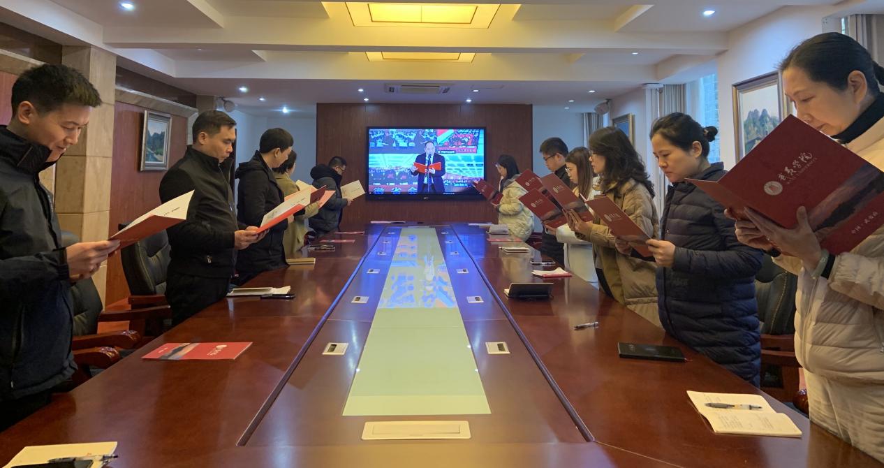 12月4日,党政办公室组织我办教职员工在聚贤楼第二会议室观看直播、参与教育系统“宪法晨读”活动。