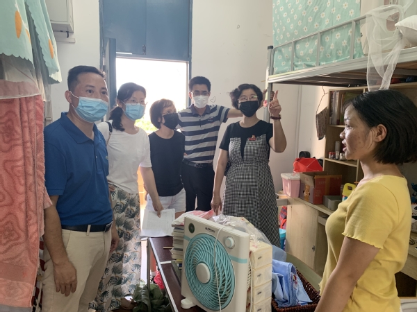 下午5点,我院党委书记施晓莉带领学生工作科、组织员办相关老师走访问候返校毕业生,转达学院对同学们亲切的关心,并交代同学们务必注意返校安全措施防护,严格遵守返校纪律要求,做好离校手续工作,并嘱咐同学们在收拾行李过程中注意防暑。