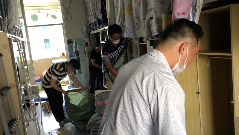 我院学工科辅导员老师,本着关爱学生,为毕业生做好最后服务的精神,在学生返校期间,共同下宿舍,帮助返校学生整理邮寄物品,并带领返校学生干部,帮助未返校学生整理邮寄个人物品。