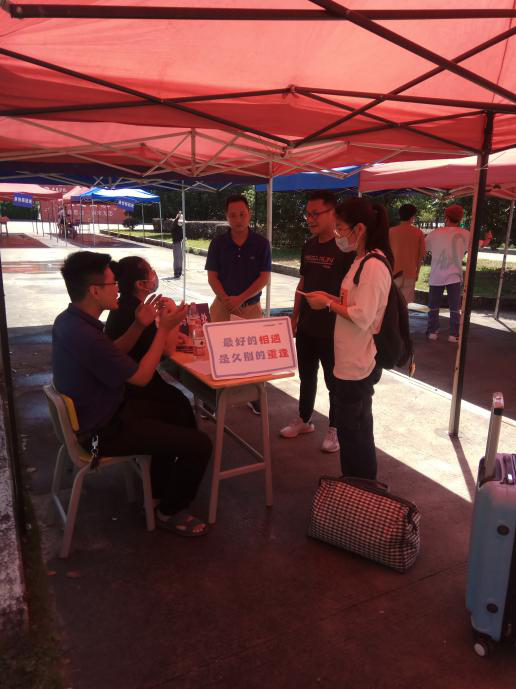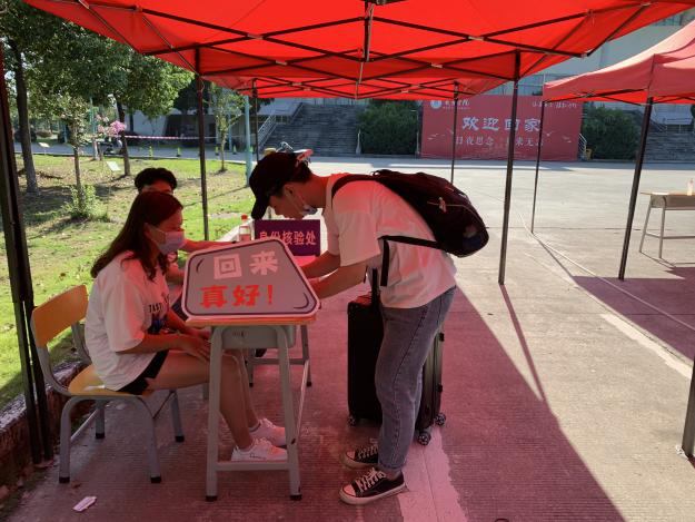 根据武夷学院《2020年秋季开学工作具体安排》,确保学生返校安全平稳有序进行,按照分批分期错峰返校原则,我院学生将于8月31日返校。当天院党委书记施晓莉、党委副书记、副院长洪永聪等院领导来到返校报到现场,实地查看学生入校各项工作,看望慰问现场工作的值班老师及志愿者,并与返校学生亲切交流。学生们凭身份证、学生证、“八闽健康码”在报到点接受行李消毒、身份核查、体温检测和信息登记后安全有序入校。