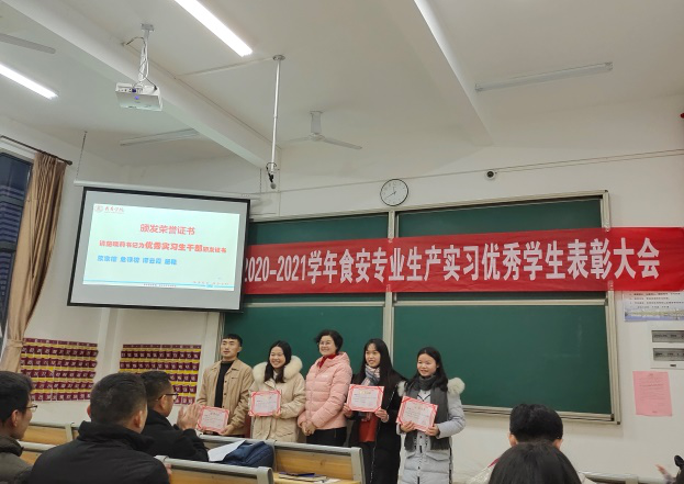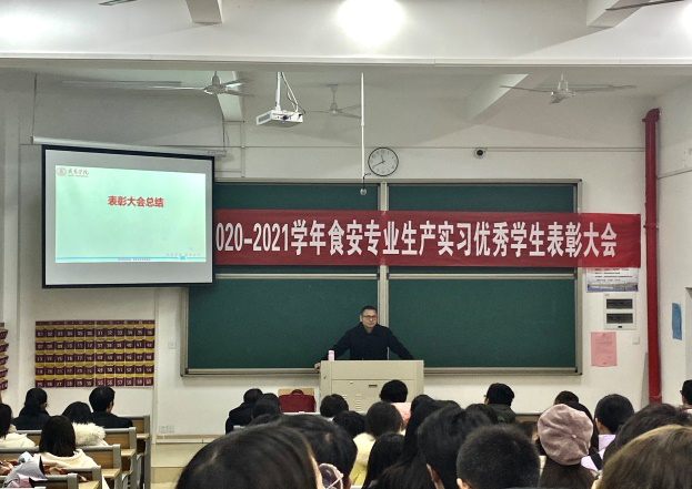 生产实习是高校实现人才培养目标,强化理论与实践相结合不可缺少的重要环节。为切实提高实习管理和人才培养质量,发挥先进典型的带头作用,12月18日下午,2020-2021学年食品质量与安全专业生产实习优秀学生表彰大会在屏山12-204召开,表彰大会由食品质量与安全系系主任吴玉琼教授主持,学院党委书记施晓莉、党委副书记、副院长洪永聪、党委组织员办公室、教科办、学工科、院分团委等部门负责人及食安系教师代表、2018级食安班学生代表、2017级食安班全体同学参加了此次会议。