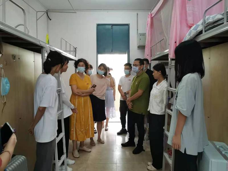 施书记与新生们进行了亲切交谈,详细了解新生生源地及到校途径行程,提醒同学们注意疫情防控,非必须不出校门,尽快熟悉新环境,做好入学教育准备。