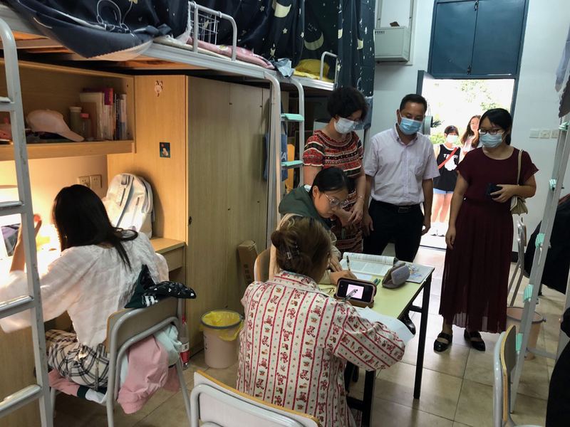 根据我校疫情防控要求,新学期我院所有线下课程均调整为线上教学。为保证线上课程保质保量正常开展,构建良好学风,9月20日,院党委书记施晓莉与学工科、教科办、各系相关教师走访学生宿舍,了解学生线上课程学习情况。叮嘱同学们认真学习每门课程,虽授课形式改变,但学习要求不变。要求学工科各位辅导员做好疫情期间学生在校各项管理工作,教科办落实学生线上课程学习相关情况,各系主任要督查各位授课教师线上课程开展情况,各部门以此为工作重心,协力开展好相关工作。