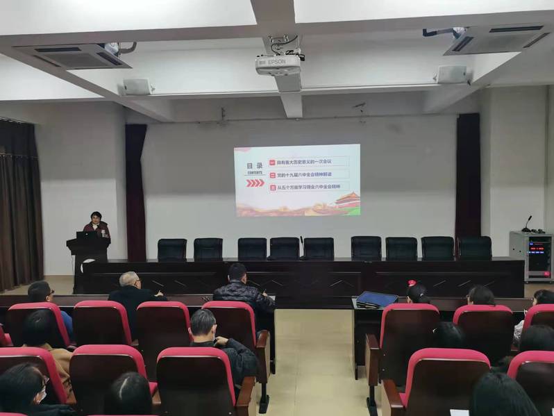 陈利华教授从“具有重大历史意义的一次会议”、“党的十九届六中全会精神解读”和“从五个方面学习领会六中全会精神”等三个方面阐述了党的十九届六中全会的理论意义、历史意义和实践意义,号召广大党员要持续加强学习贯彻领悟,坚定理想信念,为民族复兴不懈奋斗!