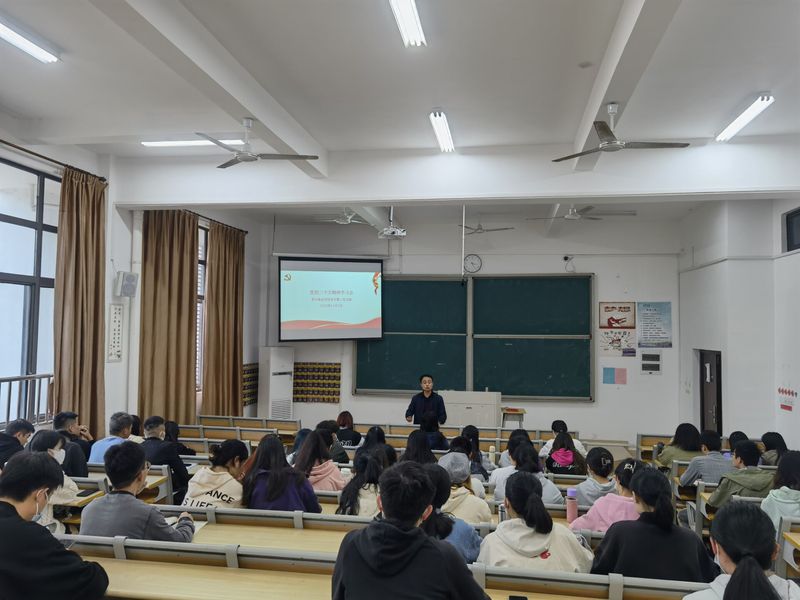 11月03日下午3点,茶与食品学院学生第二党支部在屏山12-201教室组织支部党员学习党的二十大精神。茶与食品学院党委副书记林有鸿老师主讲。