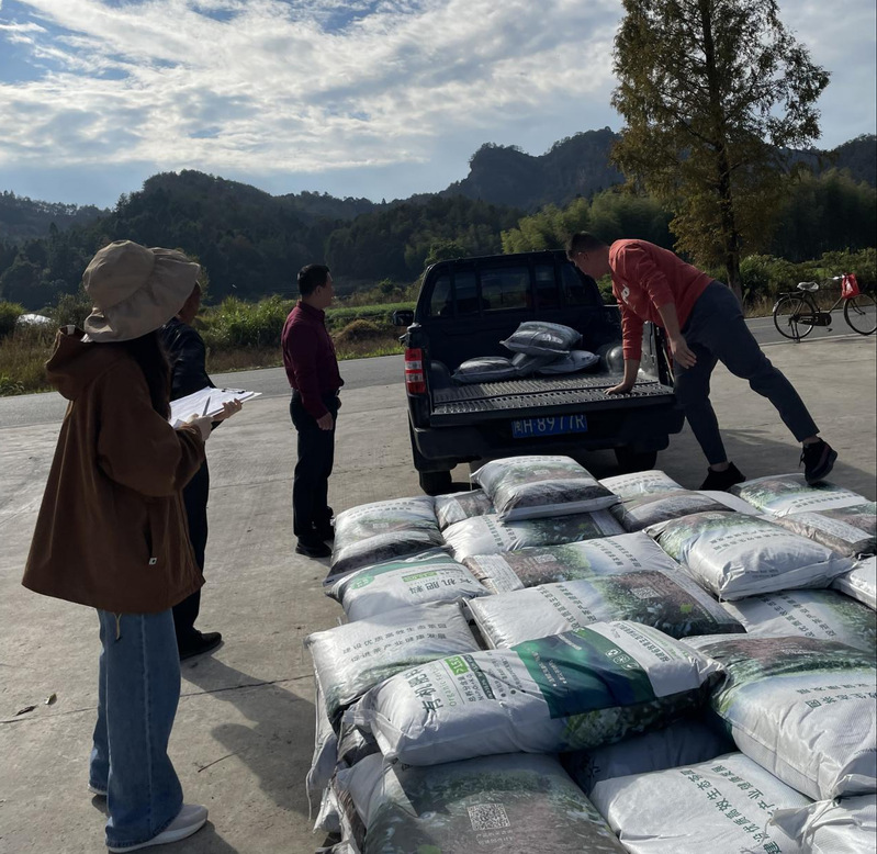 11月9日,武夷岩茶绿色创新中心在武夷街道黄龙洲免费为“燕子窠生态茶园模式”示范基地茶农发放茶树专用有机肥。茶与食品学院副院长叶江华、武夷山市茶产业发展中心茶叶科学研究所农艺师、科技特派员徐茂兴以及岩茶中心其他相关人员参与了本次活动。