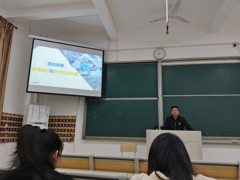 范俐副院长从“疫情防控措施科学有效”“经济社会发展稳中向好”“坚定夺取双胜利的信心”三个方面展开,带领学生深入学习新冠肺炎疫情以来我们国家所采取的防控方针,学习国家在统筹疫情防控和经济社会发展方面的各项政策措施,引导广大学生坚定信心,认真做好个人疫情防控,为夺取疫情防控和经济社会发展双胜利而共同努力。