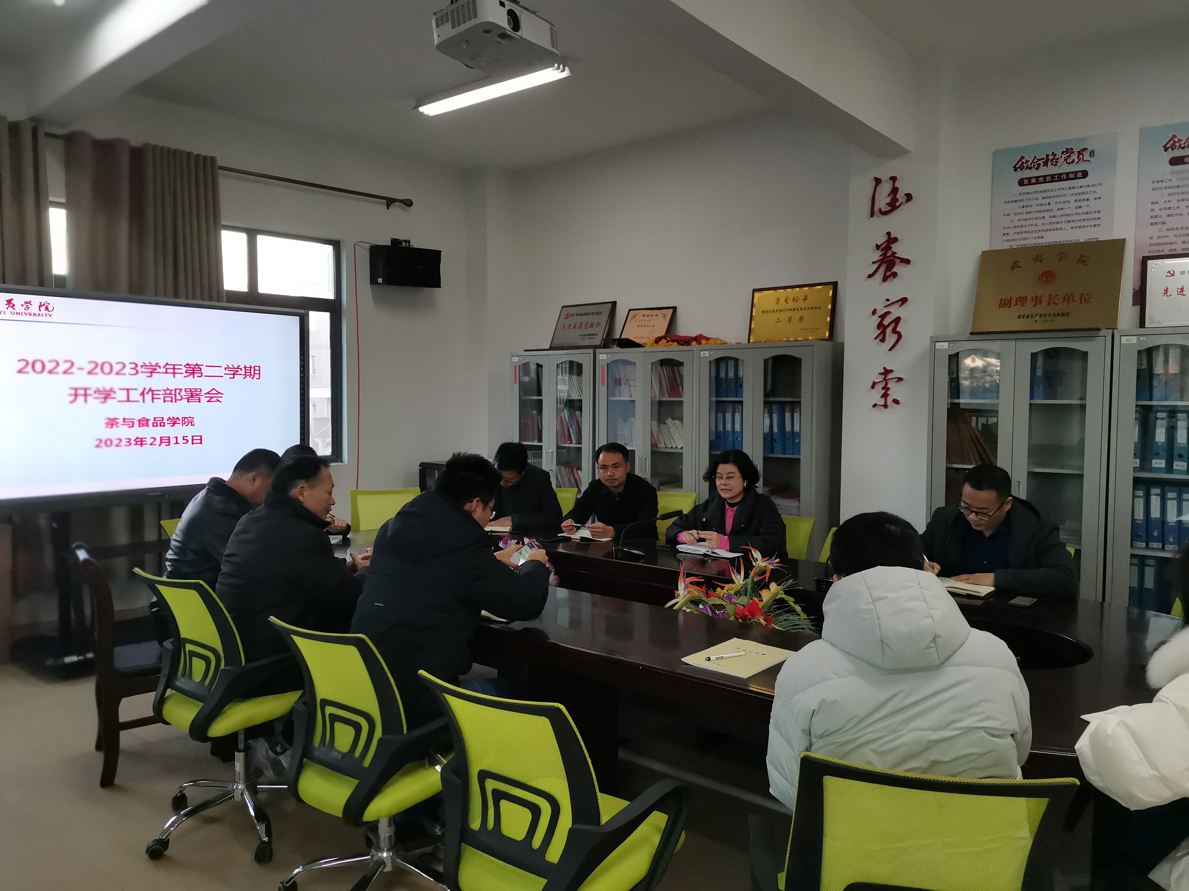 2月15日下午,院党委书记施晓莉主持召开2022-2023学年第二学期开学工作部署会,院党政领导班子成员、各部门负责人及全体学工科成员参加会议。