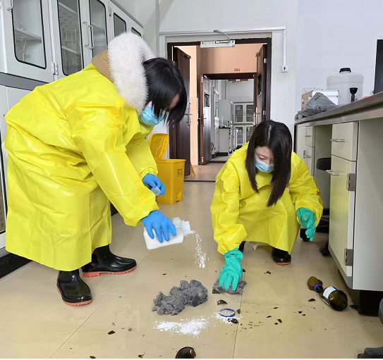 2023年2月23日上午,我院实验教学中心组织开展危化品泄漏应急处置演练。学院分管副院长范俐及实验教学中心全体管理人员参加了此次演练。