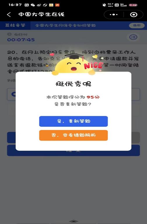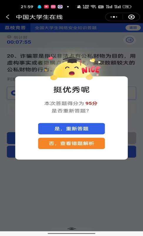(1)组织学生开展“守护青春网络有你”全国大学生网络安全知识答题活动,提高大学生防范网络诈骗、安全使用网络的能力,累积有500多位学生参与答题。