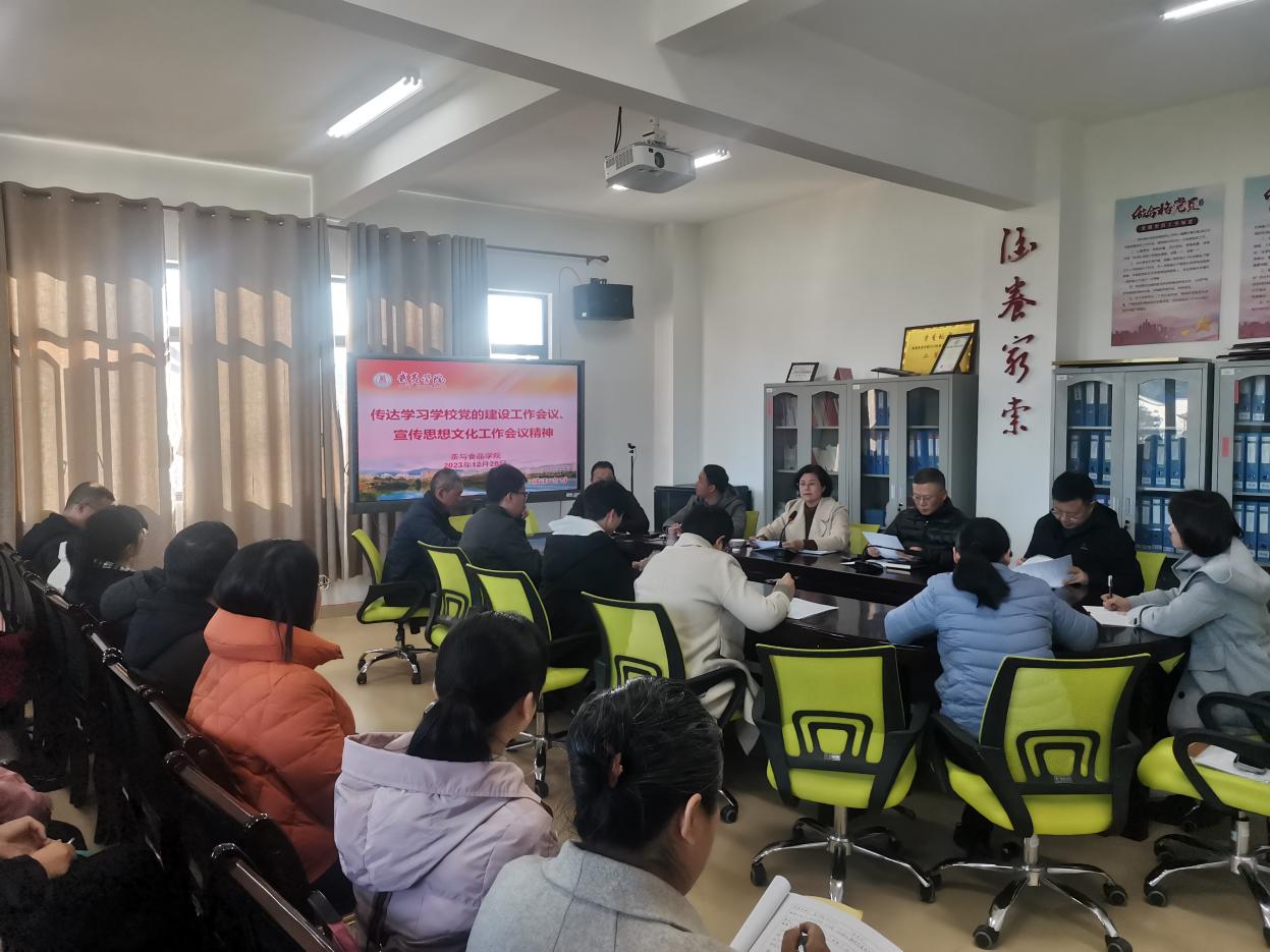12月28日下午,我院组织召开全院教职工大会,传达学习和贯彻全校党的建设工作会议和宣传思想文化工作会议精神。会议由院党委书记施晓莉主持。