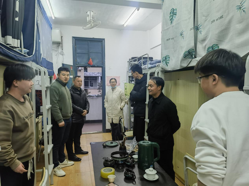 会后,林有鸿带领班主任代表、学工全体成员及宿舍楼长深入学生宿舍,了解学生假期生活及返校情况,提醒同学们注意宿舍用水、用电安全,注意防寒保暖,时刻关注身体状况,及时调整状态,做好开学第一课的准备工作。