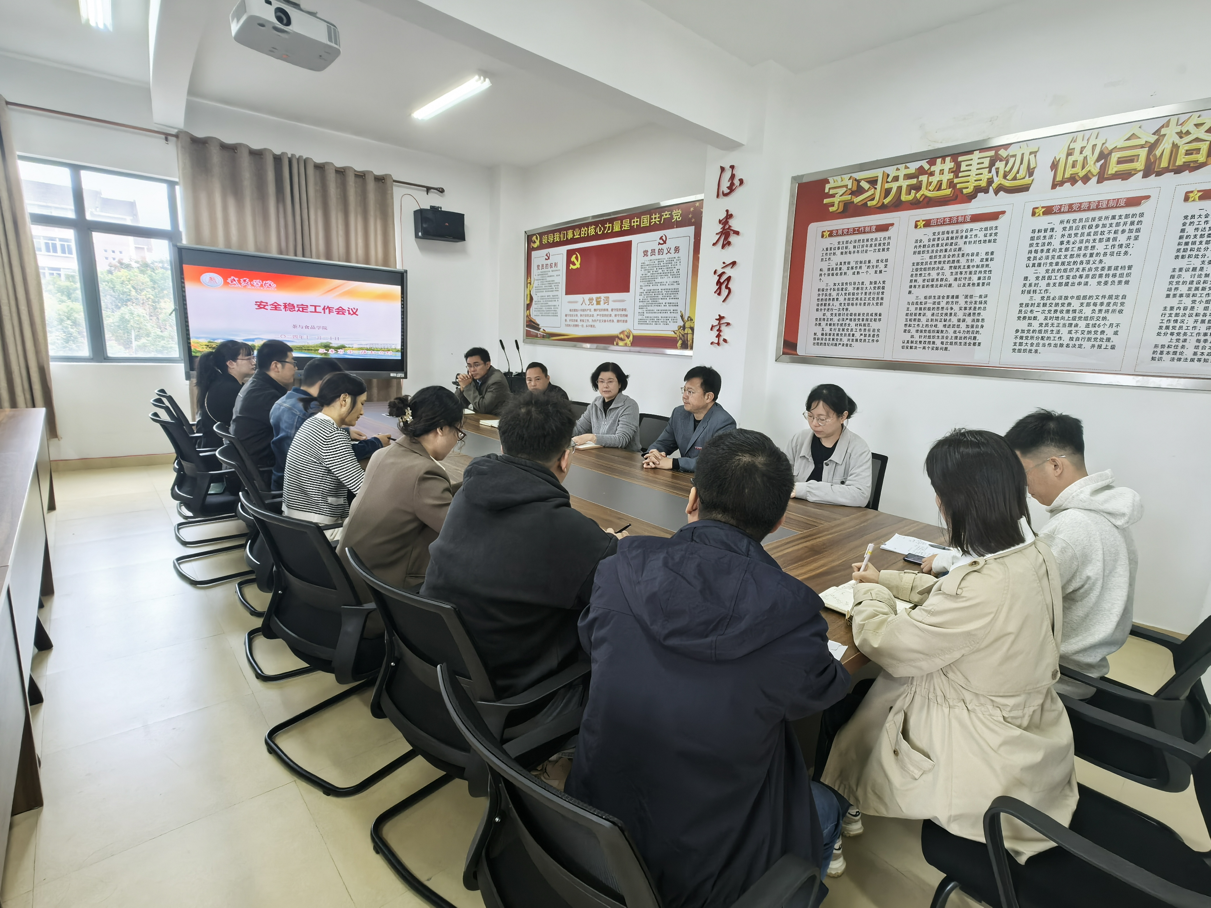 会上,对学院近期安全稳定工作值班值守安排做了详细布置,针对学院所属学生社区,教学区,实验区,办公区等重点区域开展全面安全隐患排查,严格执行落实安全稳定各项工作要求。